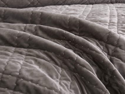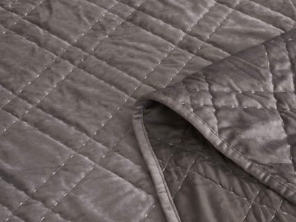Покрывало Селена выполнено в девяти оттенках: пудра, антрацит, беж, изумруд, капучино, пепел роза, серебро, стоун, терракот. Они подойдут практически для любого интерьера, от классического, до модерна или романтического. Стеганое бархатное покрывало будет необыкновенно смотреться на вашей постели. В комплект входят покрывало и одна либо две наволочки (50х70 см) из аналогичного материала в зависимости от размера.
