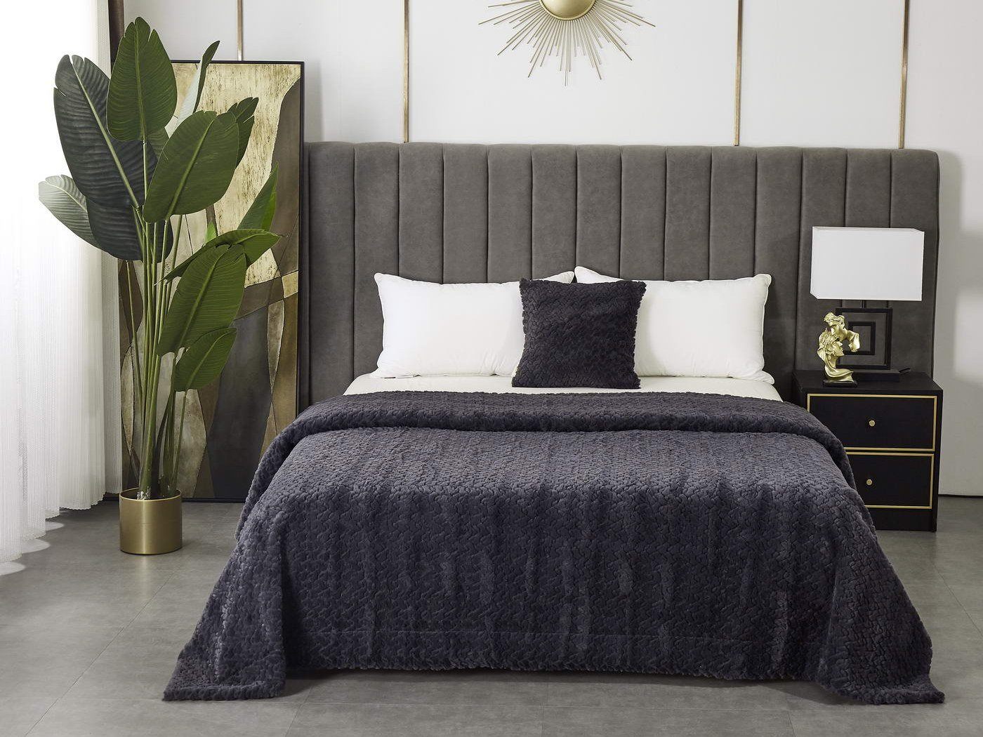 Пледы и наволочки Теодор продаются отдельно, а это расширяет простор для творчества. Вы можете подобрать к белому пледу наволочки цвета мокко или розовые, а к черному – белые или бежевые. Не ограничивайте свою фантазию.
