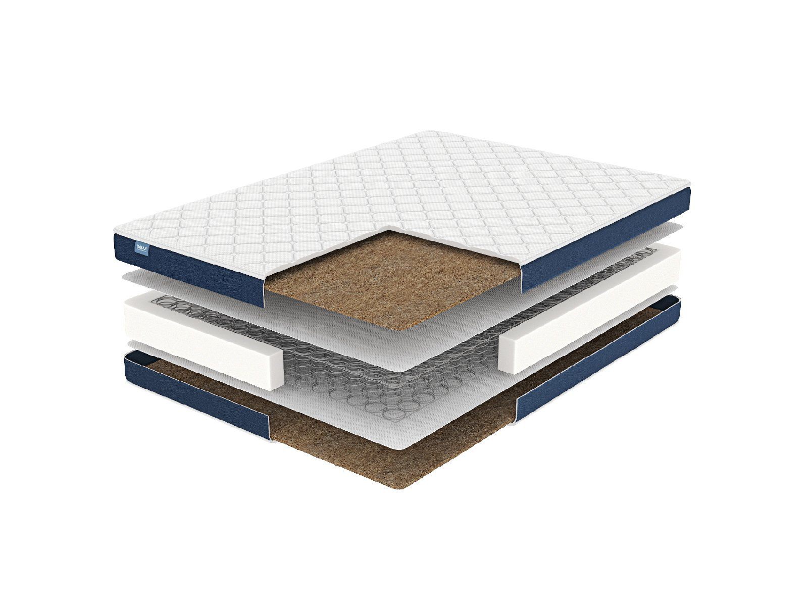 Жёсткость модели придают плиты кокосовой койры, проложенные у поверхностей. Это самая твёрдая и плотная разновидность наполнителей. Спрессованное кокосовое волокно скрепляют латексным раствором и режут на слои разной толщины. Плита удерживает позвоночник в анатомически правильном положении и продолжает работу пружинного блока, который расположился прямо под ней.