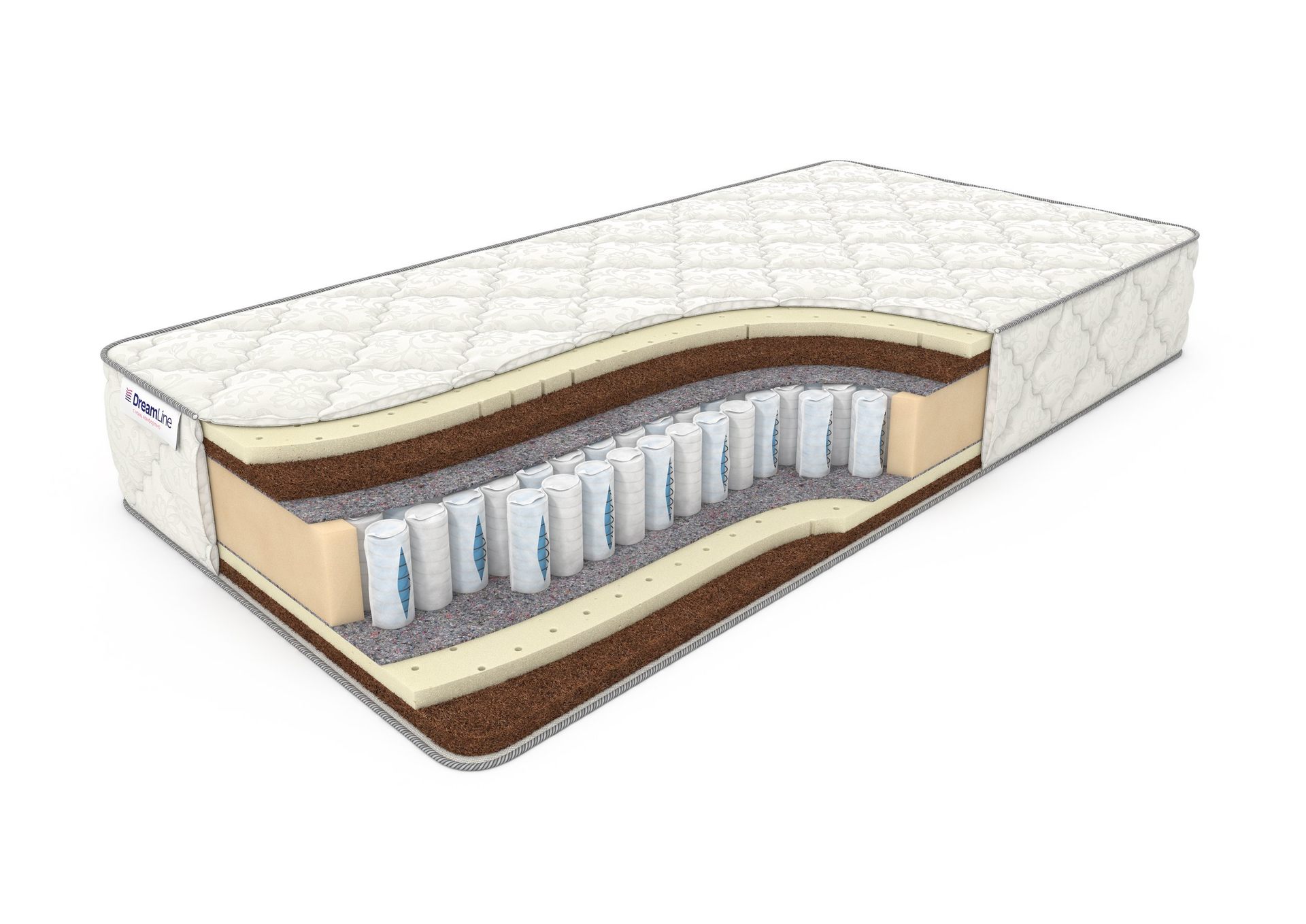 Особенность матраса Prime Mix DS, высота которого 26 см, в его максимальной надежности, обеспеченной уникальным механизмом независимых двойных пружин (внутри пружин с большим диаметром находятся пружинки маленького диаметра). Такая конструкция выдерживает большие нагрузки (до 160 кг на спальное место) и идеально подходит для пар с большой разницей в весе. Наполнителями для данной модели служат кокосовая койра и латекс - по слою с каждой стороны. С одной из сторон (средней жесткости) наверху находится слой латекса, принимающего форму тела и обеспечивающего высокий комфорт. У другой стороны жесткость выше средней, там сверху расположен слой койры, обладающей превосходными ортопедическими свойствами. Матрас Prime Mix DS оснащен чехлом из трикотажа, простеганного на антиаллергенном холконе 250 гр./м2, в который можно бесплатно вшить смотровую молнию.