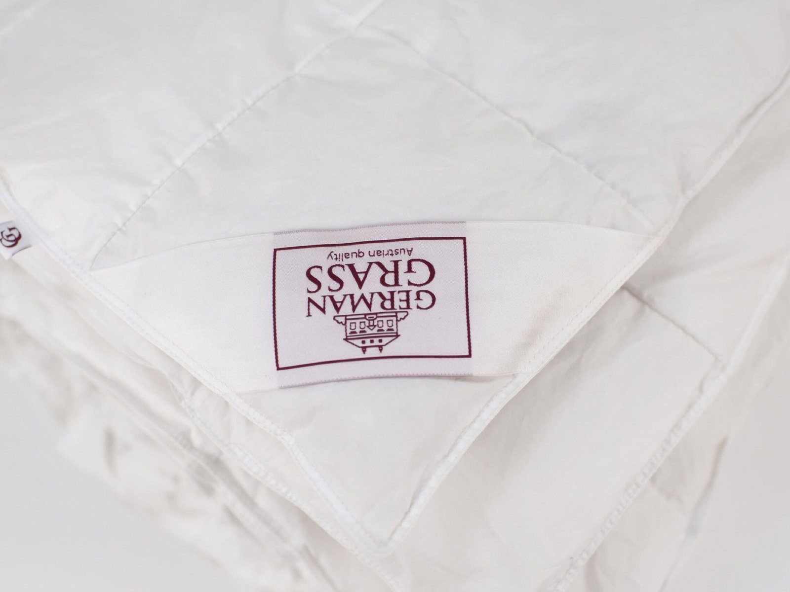 Одеяло ROYAL DOWN GRASS создано из супертонкого мако-батиста (Mako-ultra fine batiste) из 100% египетского хлопка, прошедшего финишную обработку SanProCare® Sensitive, что позволяет достичь состояния «пуховой мягкости». Сертификат OEKO-TEX® Standard 100 – это стандарт безопасности текстильных изделий. Наполнителем для этой эксклюзивной коллекции служит пух повышенной упругости, который при малом весе обладает особенной пушистостью и, тем самым, лучшей теплоизоляционной способностью.