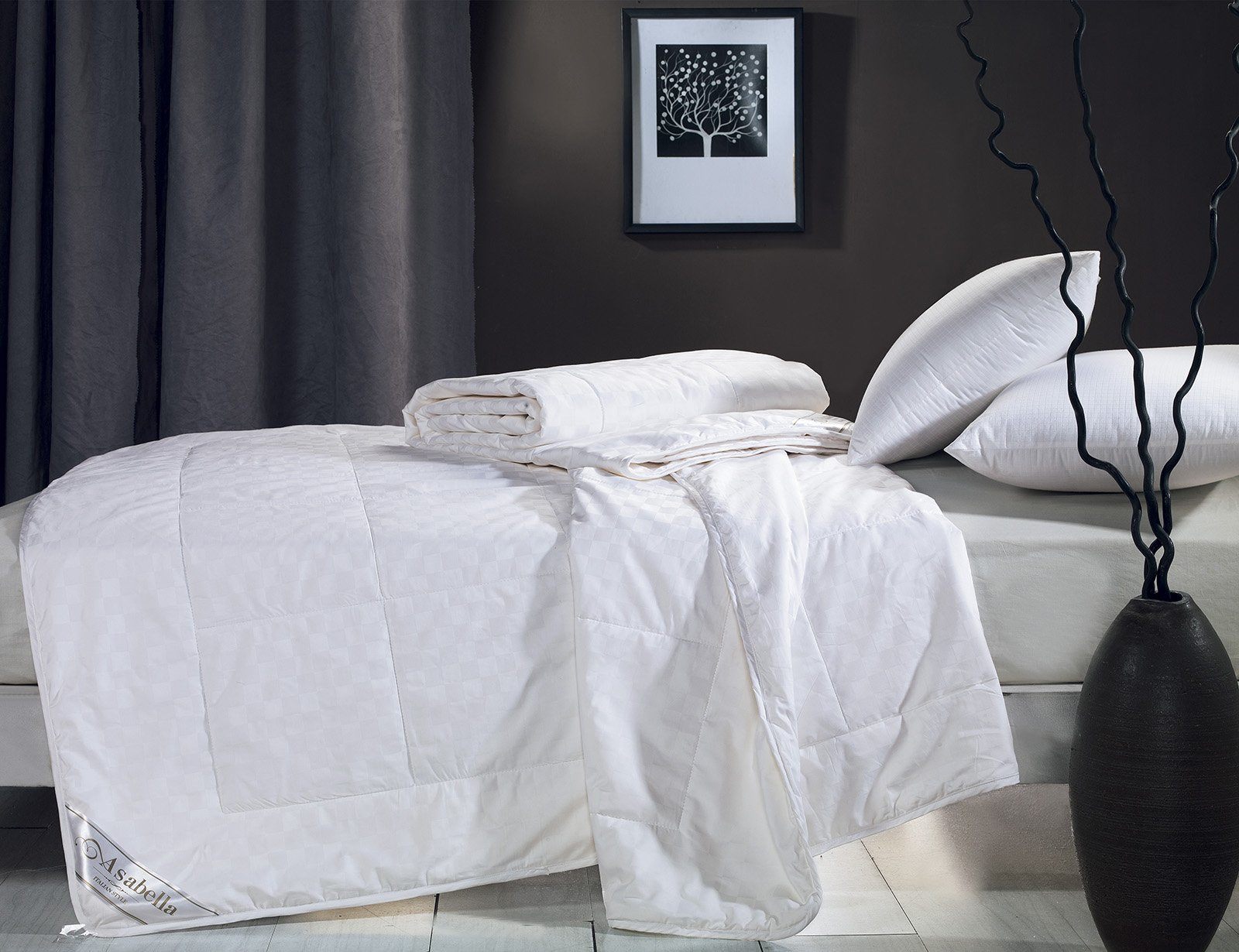 Для изготовления шелковых одеял используют нити тутового шелкопряда, вручную укладывая их в однородную массу. Одеяло получается очень мягким, легким и износостойким. Обладает уникальными свойствами абсорбировать влагу и регулировать температуру тела благодаря хорошей циркуляции воздуха. Абсолютно безопасно для людей, страдающих от аллергии и астмы.