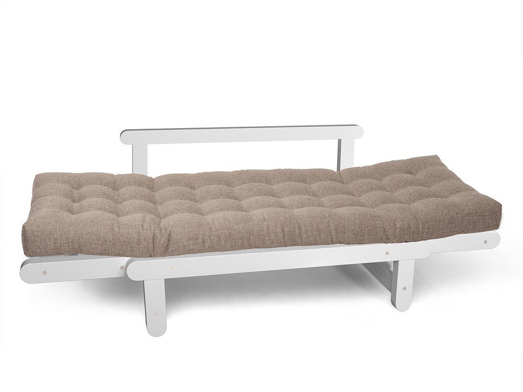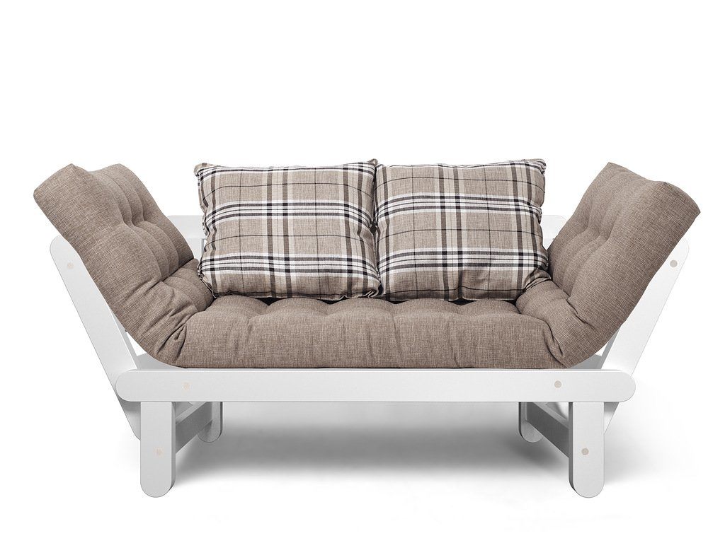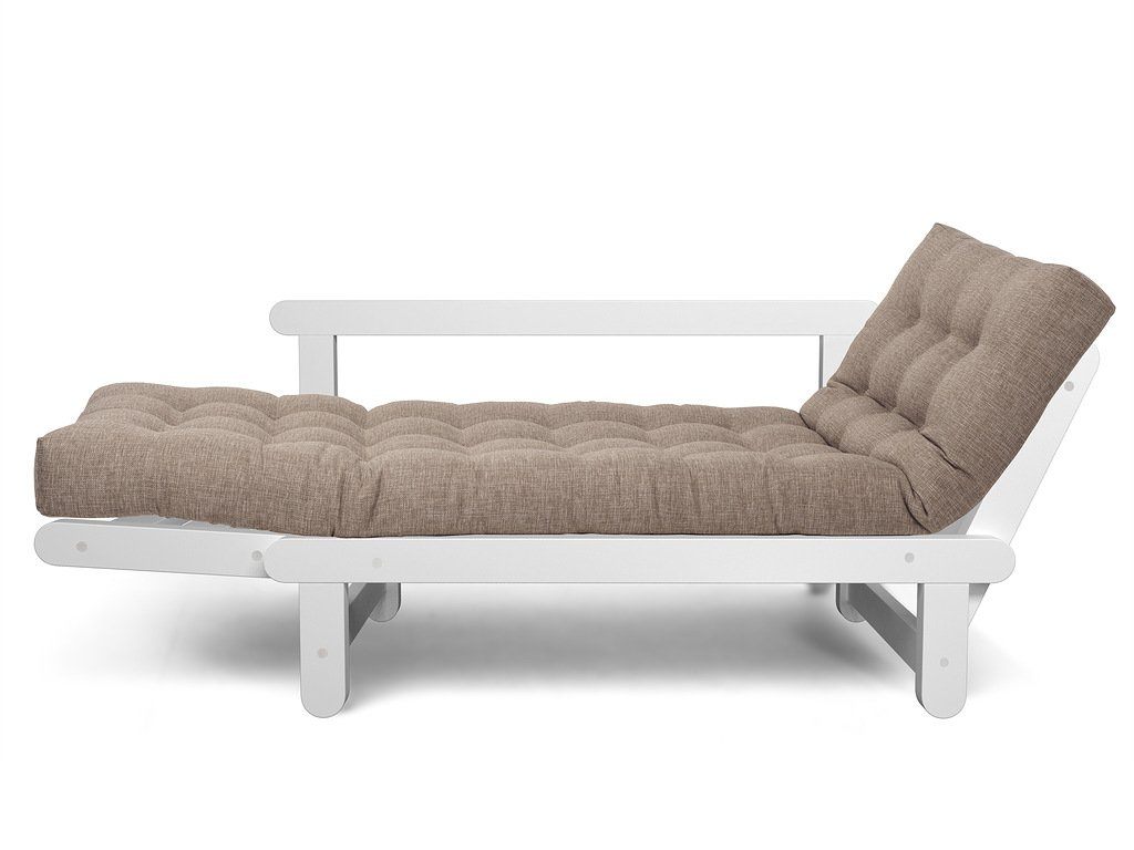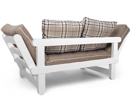 Каркас кушетки изготавливается из массива сосны. Откидные подлокотники имеют два положения, что позволяет, с комфортом разместится двум человекам.