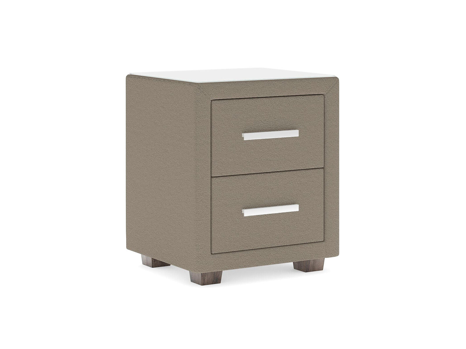 Прикроватная тумба с двумя выдвижными ящиками сочетается с любыми моделями кроватей, органично вписывается в интерьер практически любого стиля. Каркас тумбы выполнен из ДСП. Каркас тумбы и фасад ящиков покрыты обивочным материалом. Для удобства использования и продления срока эксплуатации, рекомендуется использовать стеклянную накладку. Накладка используется в качестве столешницы для тумбы и защищает ее от повреждений и загрязнений. Стеклянная столешница заказывается дополнительно.