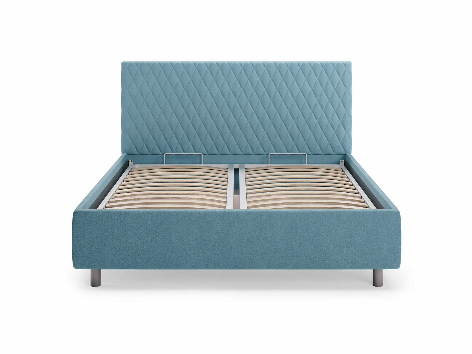 Кровать комплектуется металлическим основанием и подъемным механизмом со вместительным бельевым ящиком. Дно бельевого ящика легко сдвигается для обеспечения уборки под кроватью.