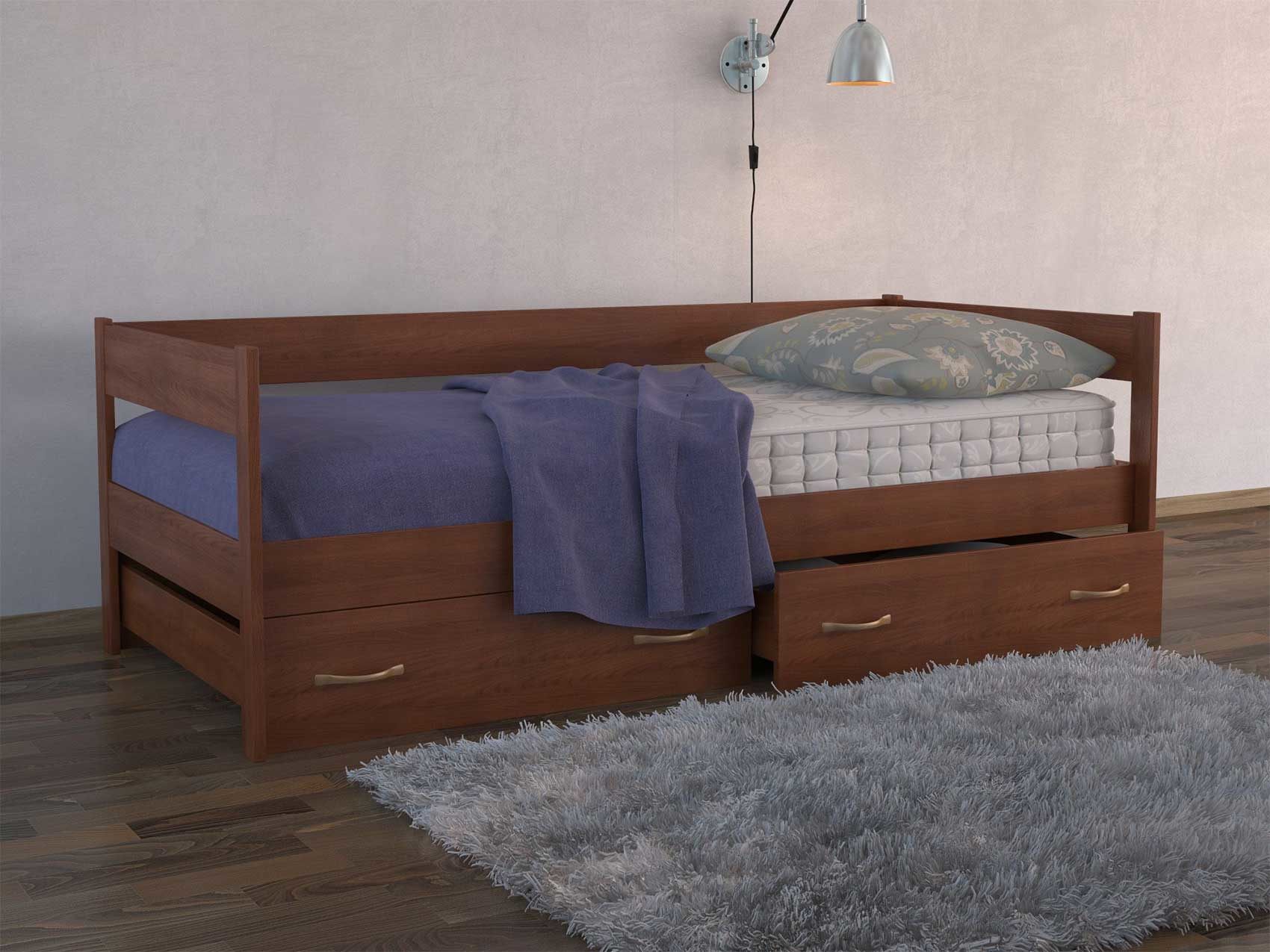 Оригинальная деревянная тахта из массива бука. Поставляется с двумя ящиками. Покрывается высококачественным полиуретановым лаком (Испания), что защищает поверхность от царапин и прочих повреждений.