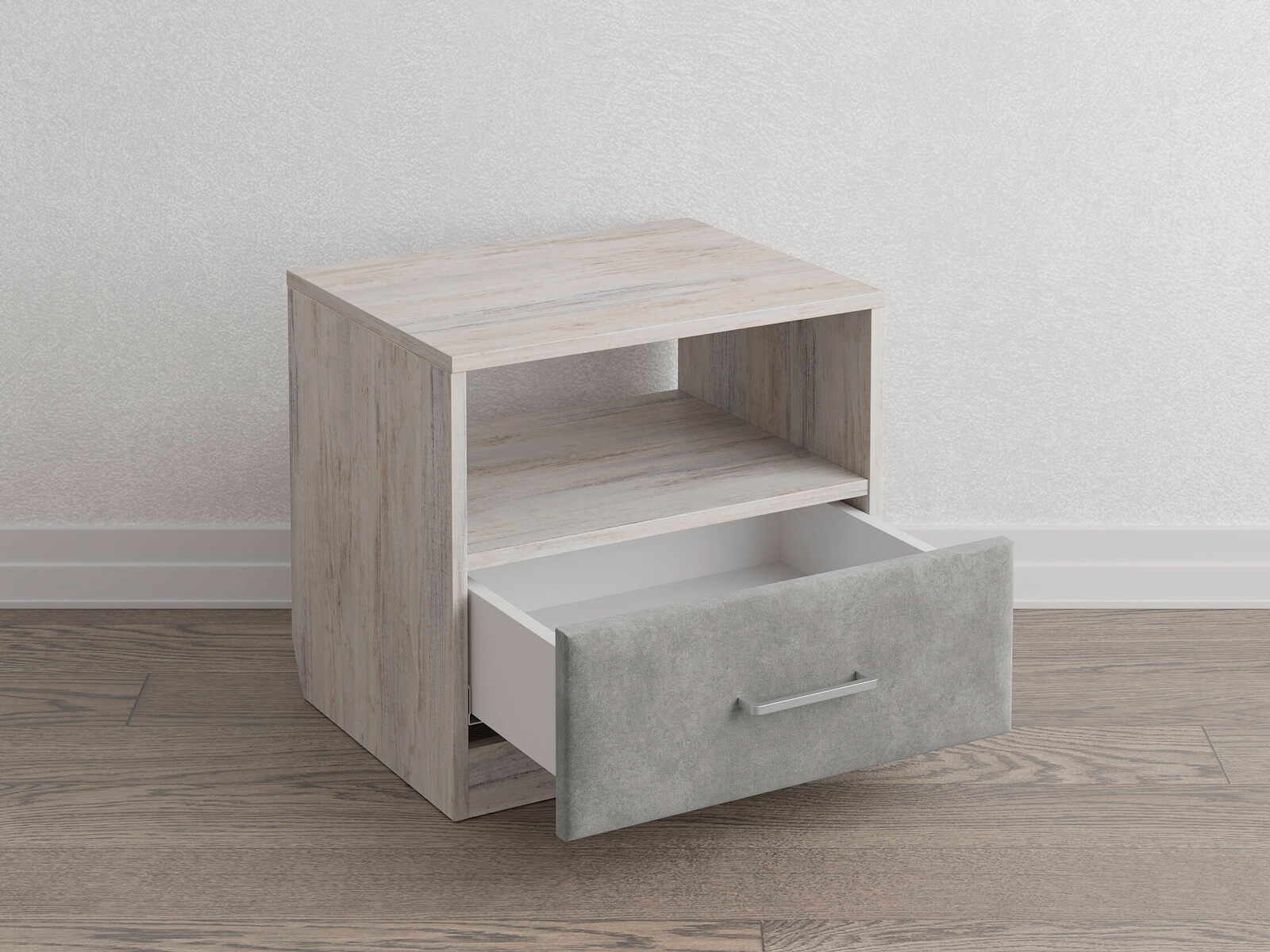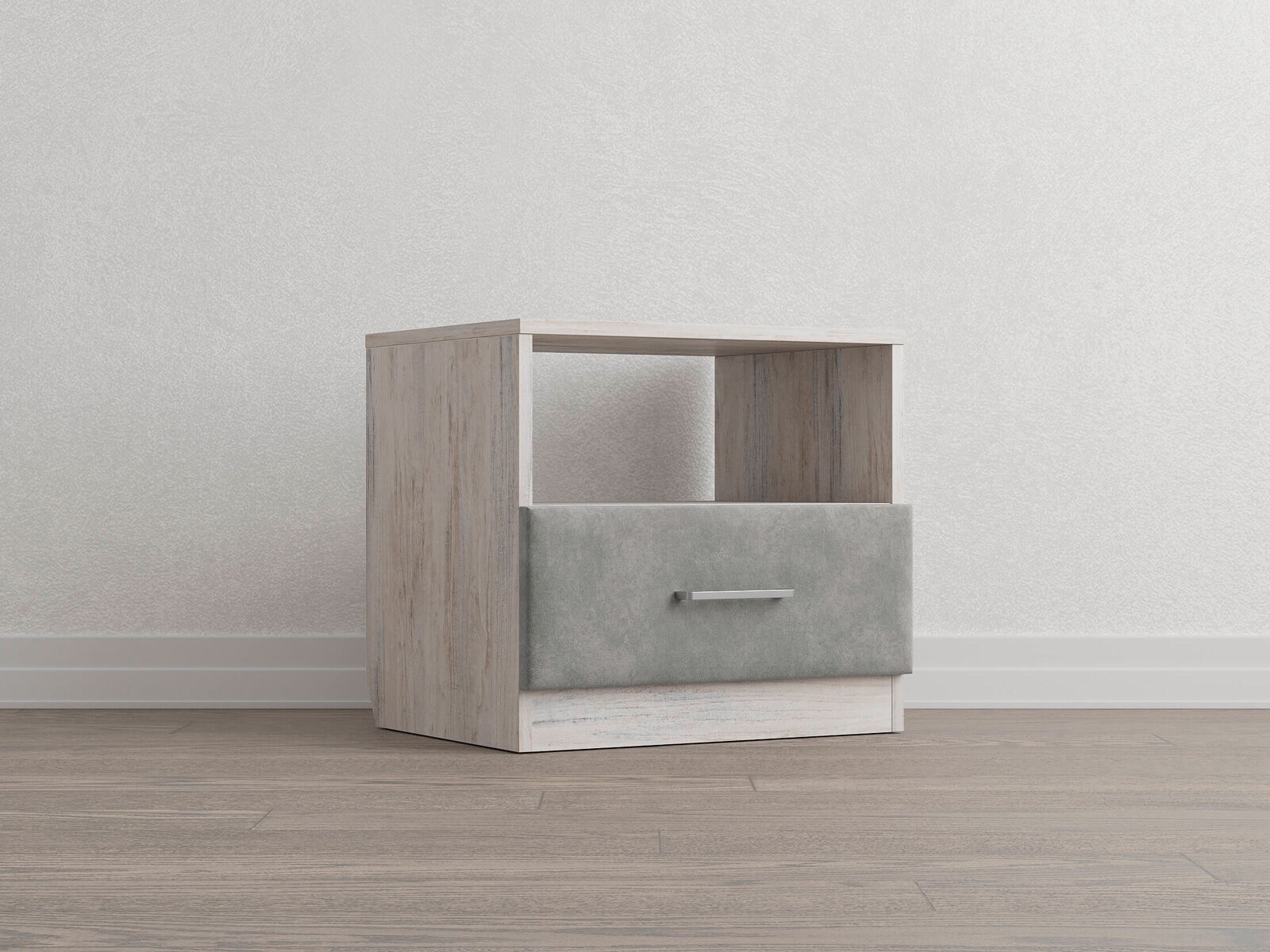 Элегантная комбинированная тумба, сочетающая в себе лаконичность ЛДСП и уют мягких фасадов ящиков, обтянутых тканью. Конструкция тумбы предусматривает открытую нишу для мелочей и вместительный выдвижной ящик с направляющими скрытого монтажа и доводчиками. Корпус из ЛДСП гарантирует долговечность и устойчивость к механическим повреждениям, а мягкие фасады в ткани и изящные металлические ручки добавят уют. Большое разнообразие текстур и цветовых решений для гармоничной интеграции в любой интерьер.