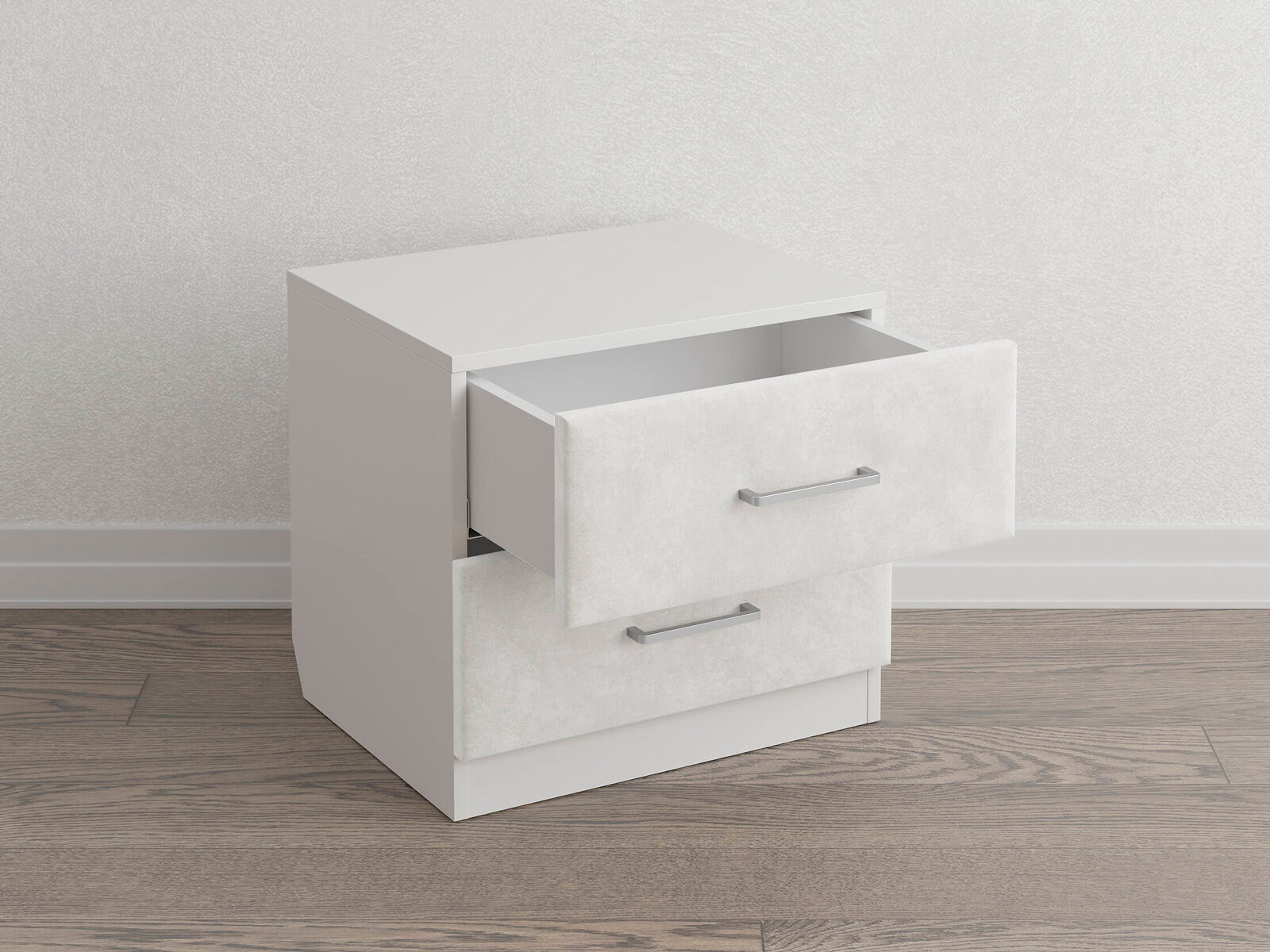 Элегантная комбинированная тумба, сочетающая в себе лаконичность ЛДСП и уют мягких фасадов ящиков, обтянутых тканью. Конструкция тумбы предусматривает два вместительных выдвижных ящика с направляющими скрытого монтажа и доводчиками. Корпус из ЛДСП гарантирует долговечность и устойчивость к механическим повреждениям, а мягкие фасады в ткани и изящные металлические ручки добавят уют. Большое разнообразие текстур и цветовых решений для гармоничной интеграции в любой интерьер.