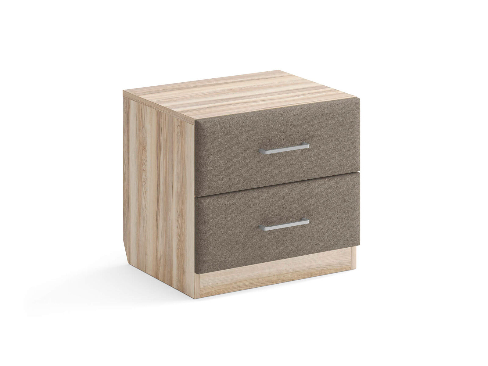 Элегантная комбинированная тумба, сочетающая в себе лаконичность ЛДСП и уют мягких фасадов ящиков, обтянутых тканью. Конструкция тумбы предусматривает два вместительных выдвижных ящика с направляющими скрытого монтажа и доводчиками. Корпус из ЛДСП гарантирует долговечность и устойчивость к механическим повреждениям, а мягкие фасады в ткани и изящные металлические ручки добавят уют. Большое разнообразие текстур и цветовых решений для гармоничной интеграции в любой интерьер.