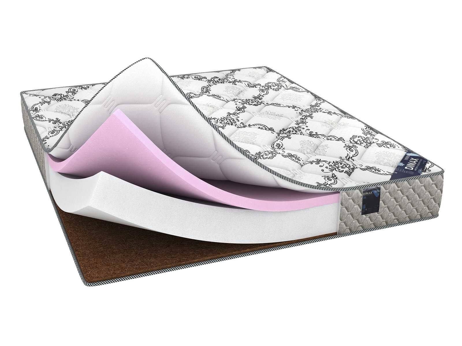 Димакс Твист Ролл Мемори – это беспружинный матрас, который сочетает в себе высокую жёсткость на одной стороне за счёт слоя кокоса и средний уровень мягкости на другой, благодаря пене Мемори. Такой контраст прекрасно подойдёт тем, кто не может определиться с одной жёсткостью или любит менять ощущения во время сна.