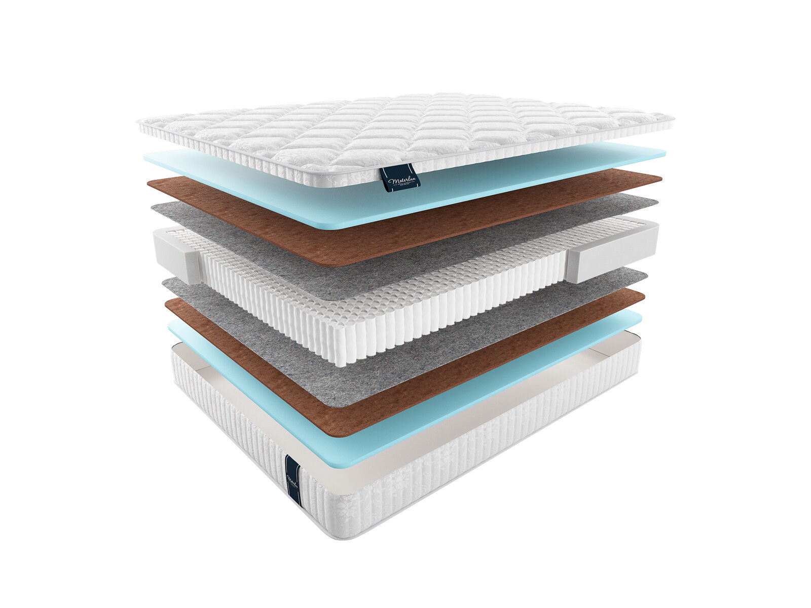 Независимый пружинный блок (520 пружин на спальное место; высота- 16 см; толщина проволоки- 1,8 мм; диаметр пружин- 5,6 см): в основе матраса лежит современный пружинный блок, оснащенный 520 пружинами, каждая из которых заключена в отдельный чехол из спанбонда. Прочные пружины из закаленной легированной стали работают автономно, реагируя только на локальное давление. Благодаря такой конструкции, движения одной пружины не передаются другим, что обеспечивает точечную поддержку тела и правильное положение позвоночника. Это способствует естественному распределению веса и комфортному сну.